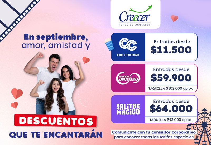 Contacta directamente a tu Fondo de Empleados Creecer y obtén tus entradas con descuento de convenio.