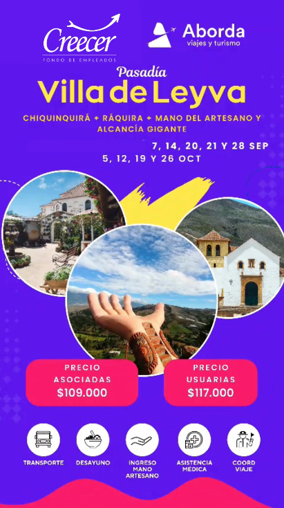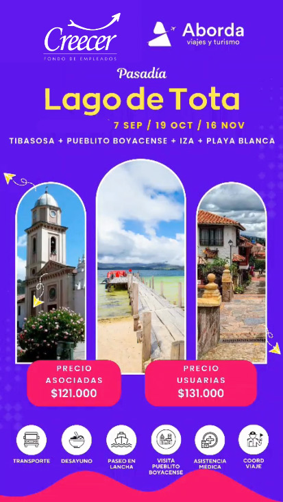 - Incluye: Transporte, desayuno, ingresos detallados, asistencia médica, coordinador de viaje.