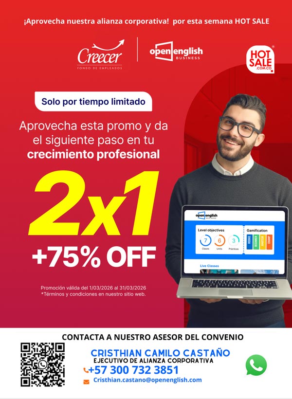 Cumple tu meta de aprender inglés. Continuamos con nuestro porcentaje de descuento para adquirir este convenio con Creecer.